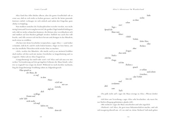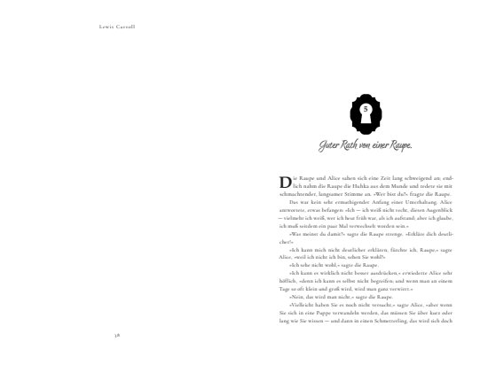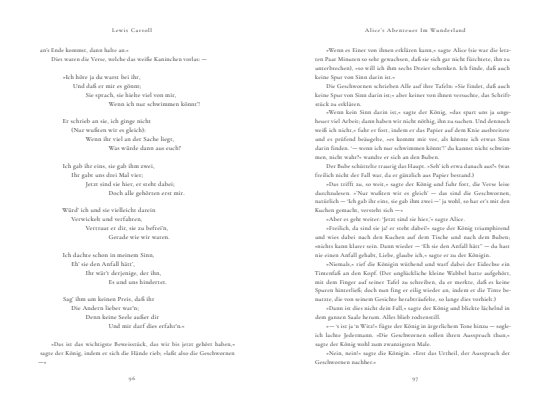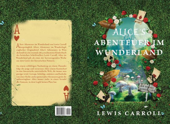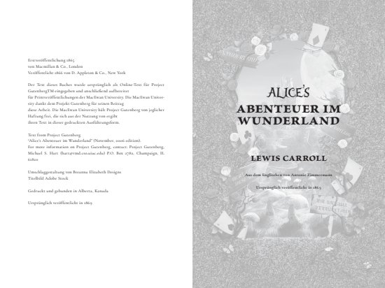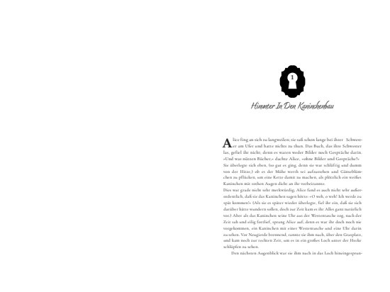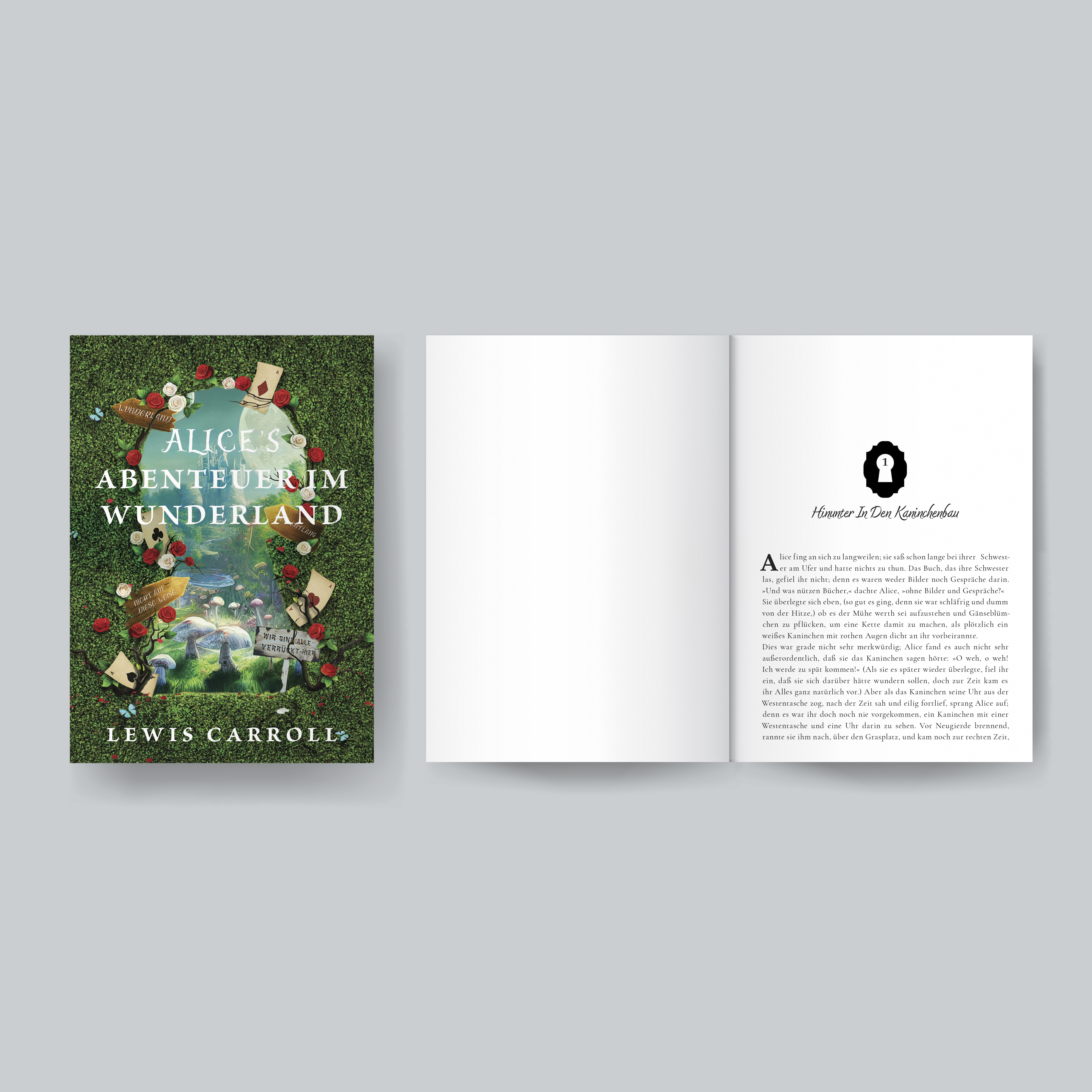 Alice’s Abenteur Im Wunderland is a project where I had to redesign the entirety of a public domain book. This ranges from designing the full dust jacket, the interior page design and the new layout of the book itself.