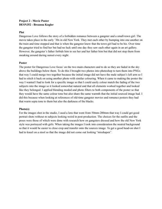 For this project I had to create a movie poster using a variety of editing techniques using both photoshop and Lightroom, I also had to use my own photography.